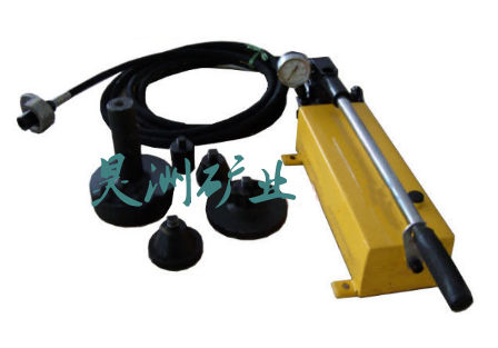 产品介绍: DZD40-A型底板比压仪集增压、测压、测底板比压(配压模)、测锚杆拉力(配卡具)功能于一身。无供液系统地段支护抢险,液压支柱修理后的压力测试等。便于携带,灵活方便。使用支柱初撑力达到 25Mpa以上。 主要技术参数: 工作压力: 0~40MPa; 泵缸容积:589cm2 ; 操作手把力矩:66N.m; 测锚杆拉力: 10t; 压模规格:¢40、60、80、130; 重量:28kg;